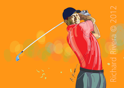 This artwork titled, Tiger's Swing, was created in Adobe Ideas. Layering of colors and elements was key. Ideas has a maximum of ten layers, but allows layers to be merged with others, and new layers created.