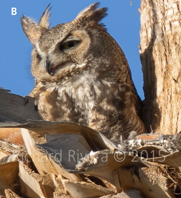 Image A (taken with the Sony a7II), and B (taken with the E-M1), shown below are 100% cropped details of the images shown in full at top. The owl was photographed with the Sony at f/8 ISO 320, and with the Olympus at f/7.1 at ISO 200. Images were processed with Adobe Camera Raw v.8.7.1 in Bridge, and both were minimally sharpened to the same degree.