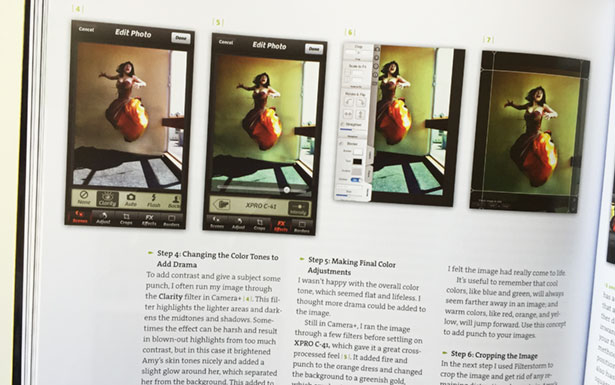 Step-by-step instructions detail the many photo apps that are useful in creating the final image.