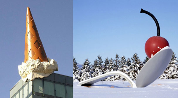 That is one of the questions that tasks us when we encounter Claes Oldenburg’s oversized sculptures. However, Oldenburg adds another element, playfulness, that transforms his everyday objects into Pop Art sculptures that remind us of what it means to be human, such as his forty-five foot Clothespin in Philadelphia, or his melting ice cream Dropped Cone in Cologne, Germany.
