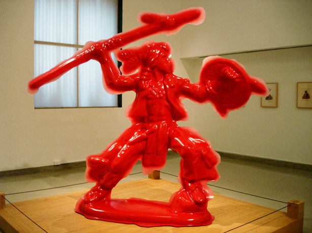 Our imagination also plays an integral part in how we envision and perceive art. I recall being dazzled by Yoram Wolberger’s 6 foot sculpture of a plastic toy figure, excess casting edges and all (Red Indian #4, The Brooklyn Museum). The original toy on which Red Indian #4 is based on, was a toy which I played with in my childhood, and was one-and-a-half inches high. In person, at a six-foot height the sculpture challenged my imagination with its scale, forced me to re-think what I thought possible, and caused so many memories to re-emerge that it was remarkable. I stood there in awe, entertained by the sculptor’s unique perspective and brilliance.