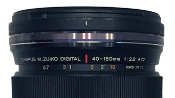 To switch the lens from AF to manual focus just pull back the Manual Focus Clutch to reveal the numerical focus scale that is normally hidden. The 40-150mm PRO focuses down to 19 inches.