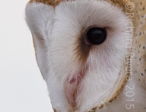 Barn Owl photographed with the M.Zuiko 40-150mm PRO at f/2.8, 1/1000 sec., ISO 200. Olympus RAW files were processed at default settings in Adobe Camera Raw. No sharpening or noise reduction was applied.