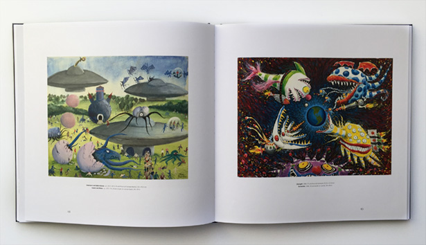 Tim Burton painting (top) and paintings featured in The World of Tim Burton.